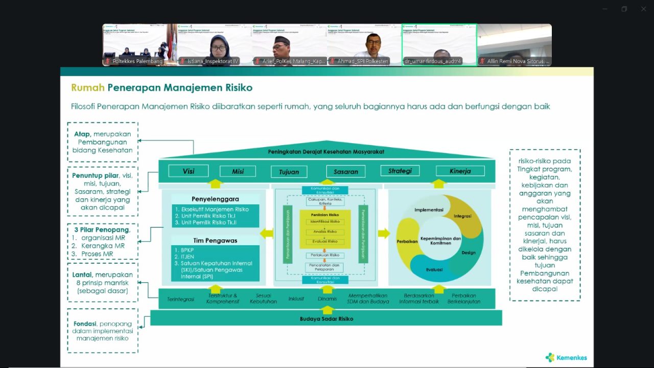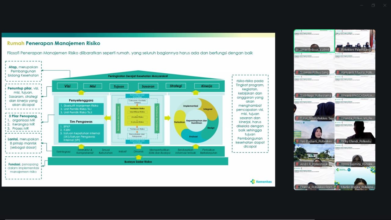 Palembang, 15 Januari 2026 (Kamis)- Mengikuti Kegiatan Koordinasi Awal Tahun 2026 dalam Rangka Penguatan Pengendalian Intern Mitra Strategis Inspektorat IV oleh Inspektur IV Kemenkes via Zoom Meeteng. Poltekkes Kemenkes senantiasa berkomitmen untuk memperkuat pengendalian intern sebagai fondasi utama dalam meningkatkan kualitas pendidikan, penelitian, dan pengabdian masyarakat di bidang kesehatan. Dengan menerapkan sistem pengendalian intern yang efektif, kita dapat memastikan akuntabilitas, transparansi, dan efisiensi dalam pengelolaan institusi, serta meningkatkan kepercayaan masyarakat terhadap lembaga pendidikan tinggi kesehatan.