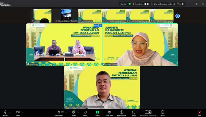 Disampaikan bahwa pembekalan softskill kali ini merupakan kesempatan terakhir bagi Poltekkes Palembang sebelum memasuki dunia kerja. Bapak Lukman, mengharapkan setelah mengikuti Webinar ini para lulusan dapat meningkatkan kemampuan kerja sama tim, berkomunikasi, adaptasi, manajemen waktu, memecahkan masalah, bekerja di bawah tekanan dan kemampuan memimpin.