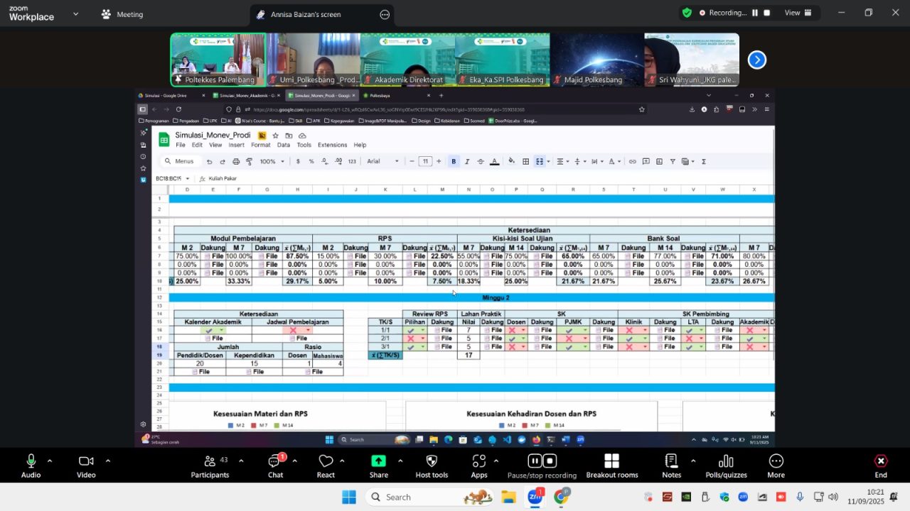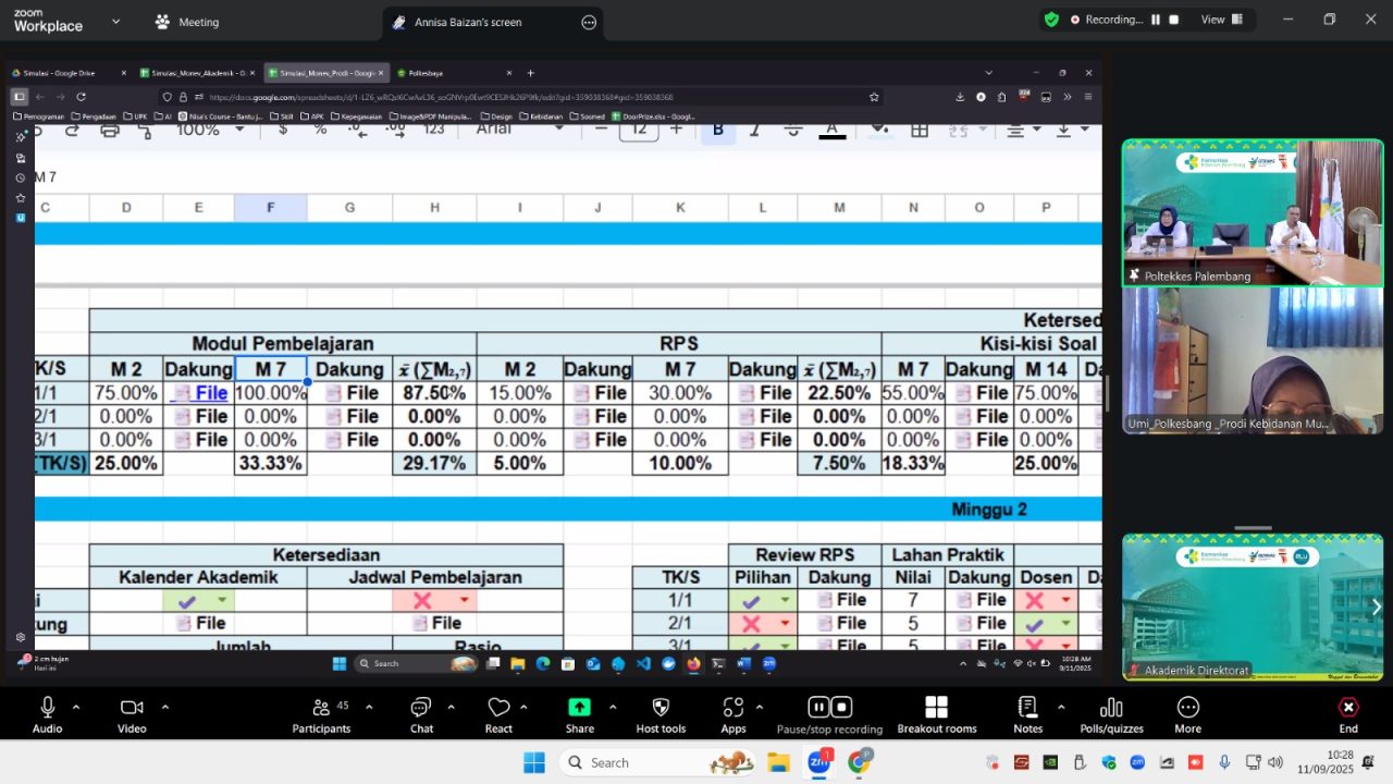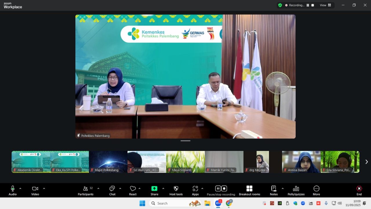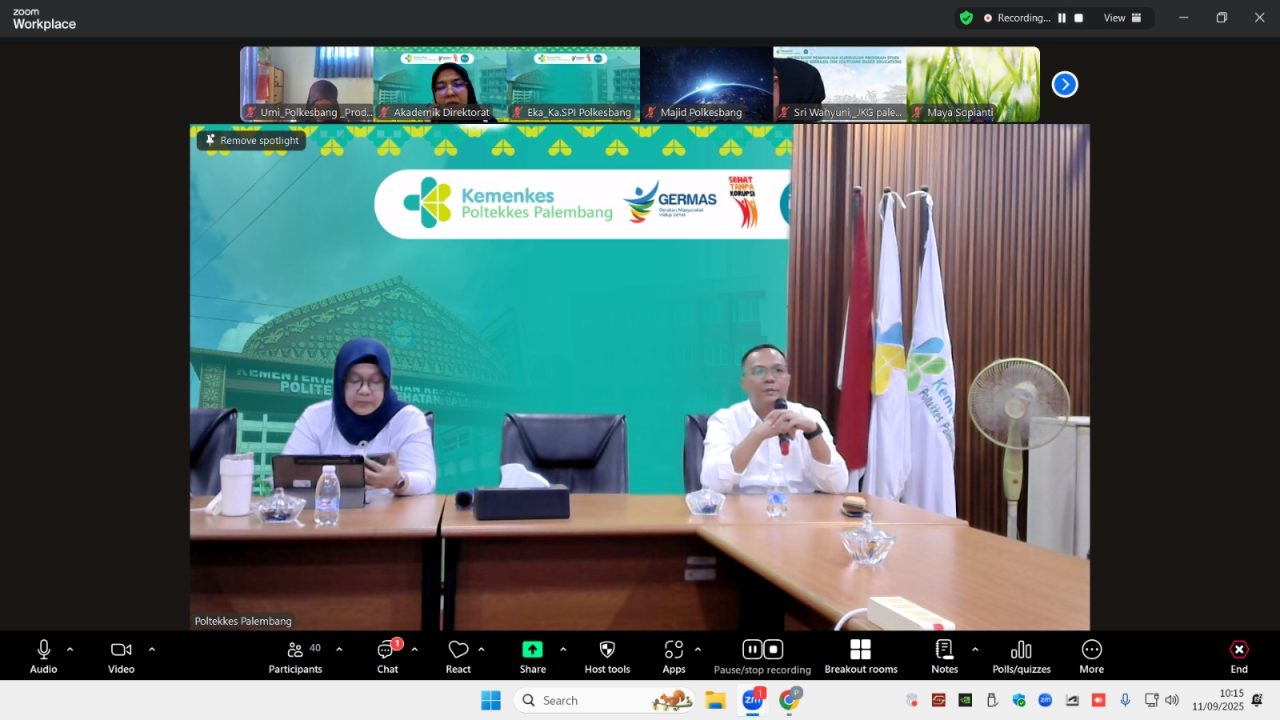 Palembang, 11 September 2025 – Unit Informasi dan Teknologi (IT) didampingi oleh Wakil Direktur I Bidang Akademik Poltekkes Kemenkes Palembang (Ibu Diah Navianti, S.Pd, M.Kes), Kepala Subbagian Administrasi Akademik (Oktavianus BTH, SKM, MM), dan Kepala Urusan Akademik (Annie Kholila Oktora Pulungan, SST, MKM) melaksanakan sosialisasi penggunaan aplikasi monev akademik Poltekkes Kemenkes Palembang. Kegiatan ini dilaksanakan secara hybrid, luring di Ruang Rapat Direktorat serta daring via zoom meeting yang diikuti oleh para Koordinator Akademik dan Admin Akademik di Program Studi.